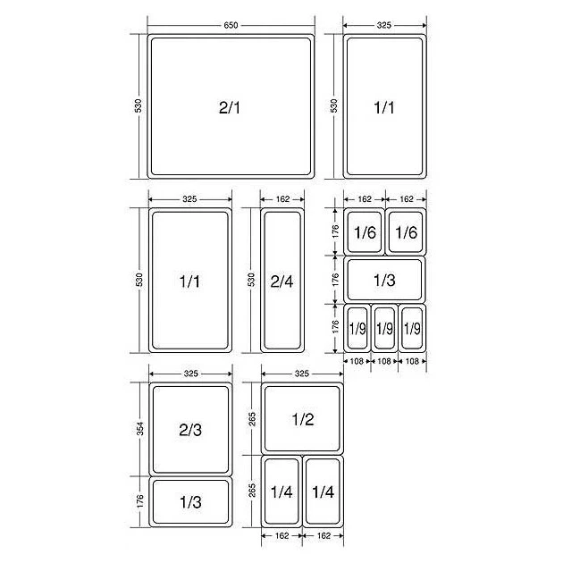– Dimensions boîte GN 2/3 : 35 cm x 32,5 cm x ht 15 cm