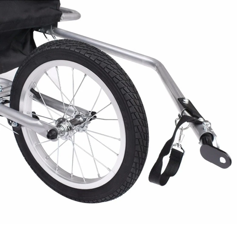 Le bras de remorque est livré avec sa fixation pour axe de roue arrière comprenant un tube en acier galvanisé, une goupille de sécurité, une sangle de maintien et un ressort de renfort présent sur le timon pour remorque vélo permet de maintenir la remorque bien en place sans ressortir de forte secousse lorsque vous roulez.