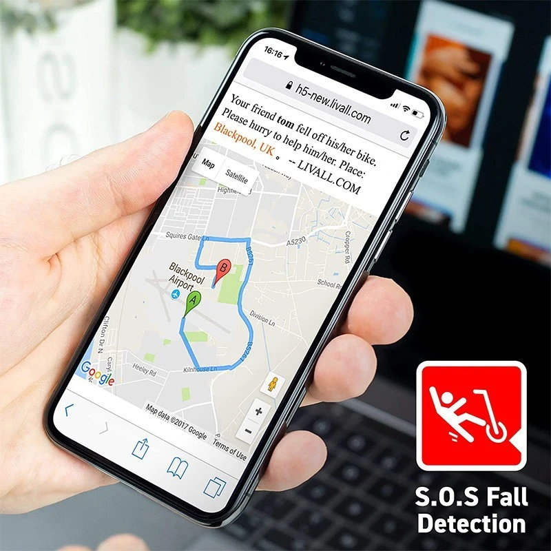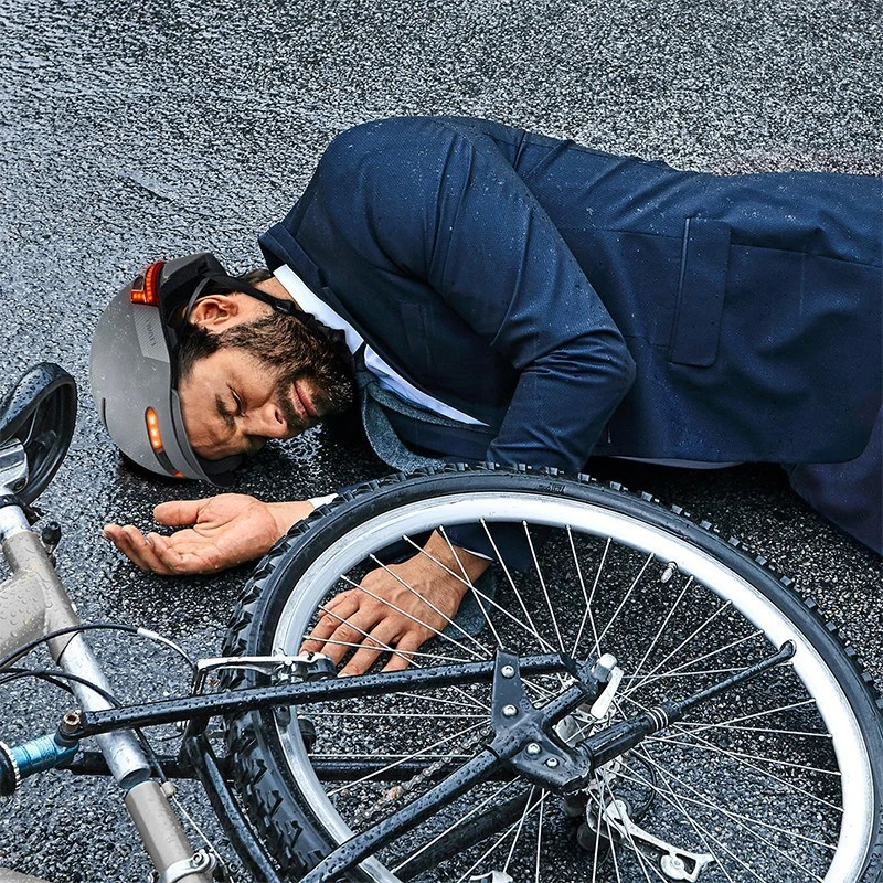 Le bandeau LED allant jusqu’aux oreilles et les 2 feux de position sur l’avant du casque vous rendent parfaitement visible de toutes parts, idéal en situation de conduite urbaine. L’astucieux système automatique jour/nuit allume automatiquement la lumière dès la nuit tombée. Bien plus évident que le simple bras tendu, un chenillard indique votre intention de tourner. Et, lors d’une chute, le détecteur de chocs intégré passe en mode lumière clignotante rouge et envoie un signal SOS au numéro d’urgence que vous aurez préalablement enregistré, après 90 secondes et avec localisation GPS.