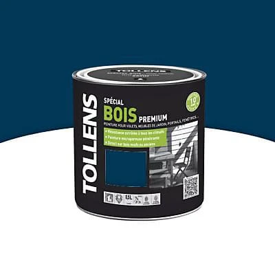 La peinture bois extérieur Tollens nuit bleue satin de 0,5L est une peinture laque glycérophtalique satinée, très résistante, conçue pour la décoration et la protection durable des boiseries extérieures: portes, volets, meubles de jardin, fenêtres, clôtures…