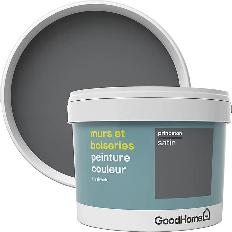 Peinture murs et boiseries GoodHome gris Princeton satin 2,5L