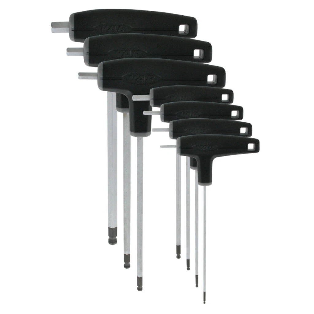 Var propose ce kit de 7 clefs hexagonales ayant chacune un diamètre différent. Vous retrouvez tous ces diamètres dans ce jeu : 2, 2,5, 3, 4, 5, 6 et 8 mm.
