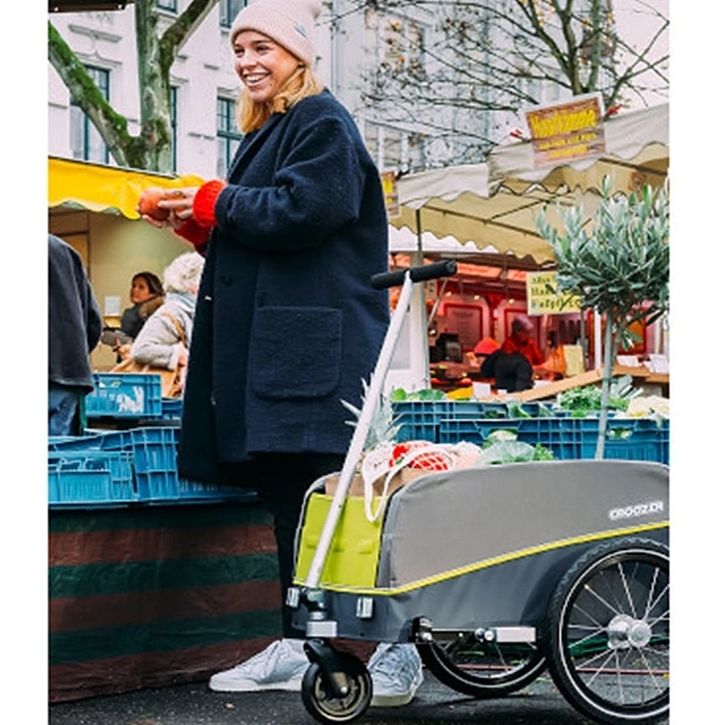 Le kit charette piéton pour remorque Croozer est trés utile pour utiliser les remorques vélo Croozer pour un tirage manuel lors des déplacements à pied pour le transport des courses, outillages et les affaires personnels lors d’un périple sportif ou une sortie en famille.