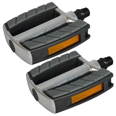 Ces pédales noires pour vélo de ville ont un empiècement gris en résine antidérapante qui aide au bon maintien du pied sur la pédale, même par temps humide. Ces pédales sont larges et confortables pour un usage récréatif ou quotidien du vélo.