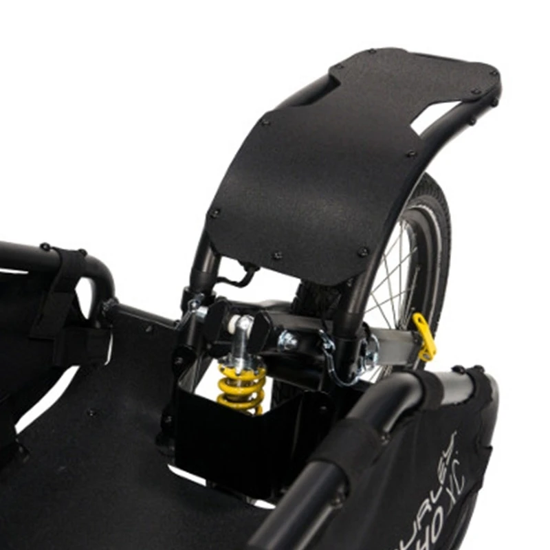 Comble de raffinement pour les cyclistes aux quotidiens et baroudeurs traversant la planète à 2,3 ou 4 roues à propulsion humaine ou électrique, le support pour les porte-bidons, la béquille, parois latérales et filet de bagage sont inclus avec cette remorque vélo mono-roue d’excellence et prête vous suivre dans toutes les aventures.