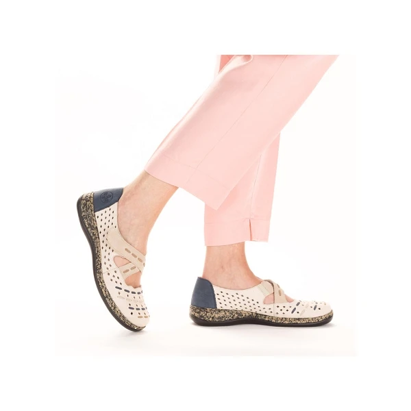 RIEKER 46378 90 est une sandale femme en cuir et etxtile ecru.