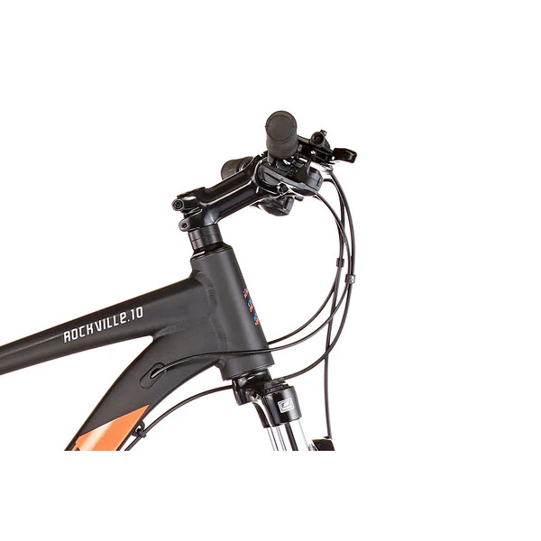 Il est doté d’un équipement fiable qui en fait un excellent VTT d’entrée de gamme, qui vous surprendra par sa polyvalence. Conçu autour d’un cadre en aluminium robuste, le Rockville reçoit ainsi une transmission Shimano Tourney 24 vitesses permettant d’envisager tous les profils de sorties, une fourche suspendue Suntour de 80 mm de débattement parfaite pour absorber efficacement les petits chocs, et un système de freinage à disque hydraulique puissant et constant.